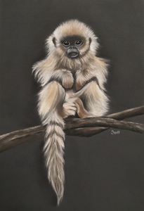 2020Gorilla baby op moeders arm pastel en kleurpotloden op Uart papier 40x40cm