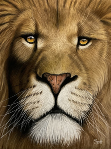 2021Close-up leeuw pasteltekening op suède karton 40x30cm ingelijst in een lzwarte lijst van 50x40cm met passe-partout