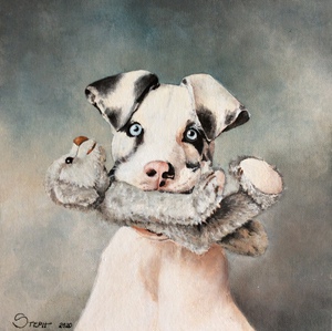 2020Meisje met reuzenratje acrylverf op doek 80x60cm inclusief vergrijsde houten baklijst